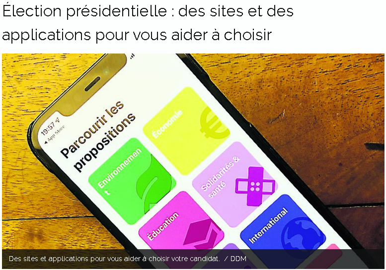 Un reportage du 13h sur TF1 sur les élections toujours en présentant les principales applications. Cete fois-ci seul le nom et le logo de Candidator sont présentés sans commentaire particulier. Voir l'article complet